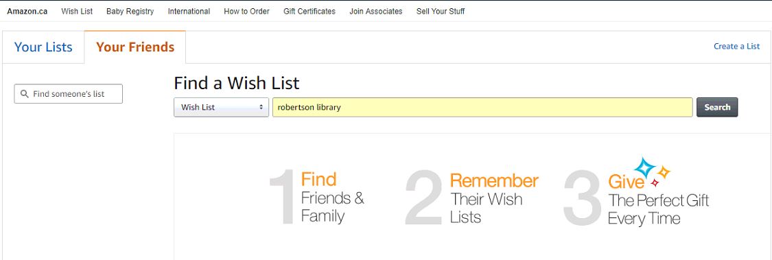 Robertson Library is now using the public wishlist feature of Amazon.ca to make it easy for donors to purchase books for the Library.