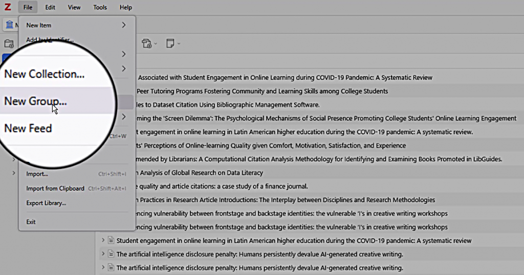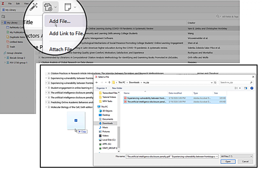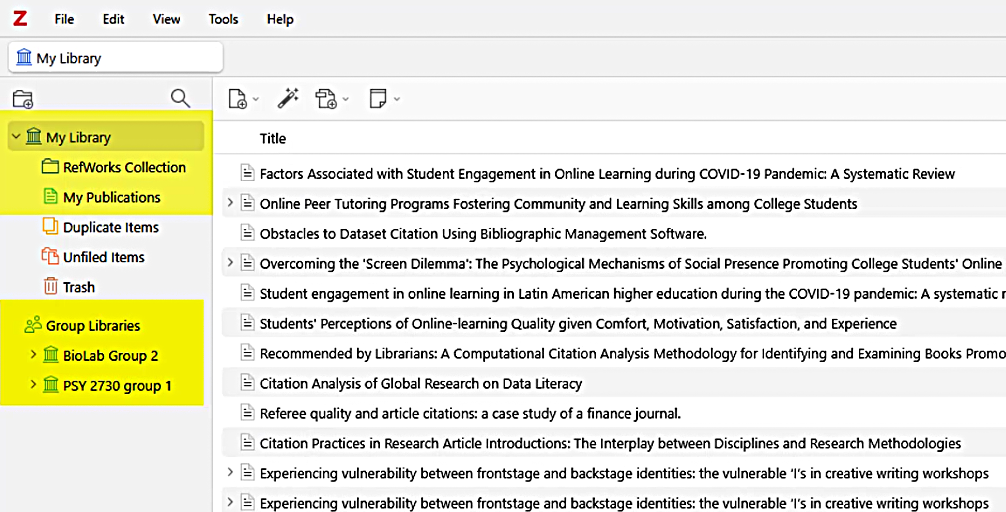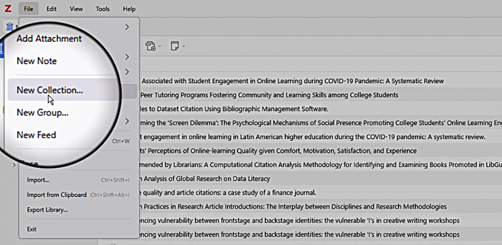 • PDFs and other files will not export with your citation data. You can export them separately, and you will need to manually reattach them to the relevant items in Zotero or another citation manager.