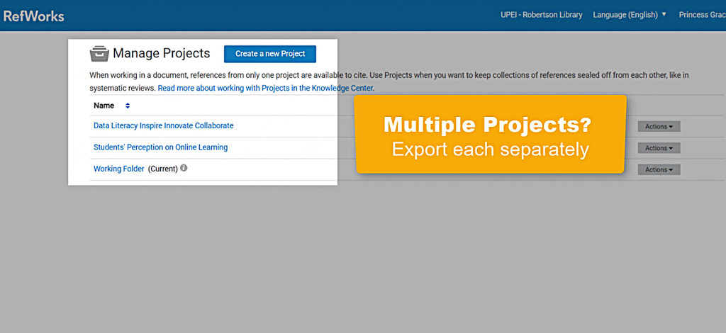 • If you have multiple Projects in RefWorks, you will need to export data from each of them separately.