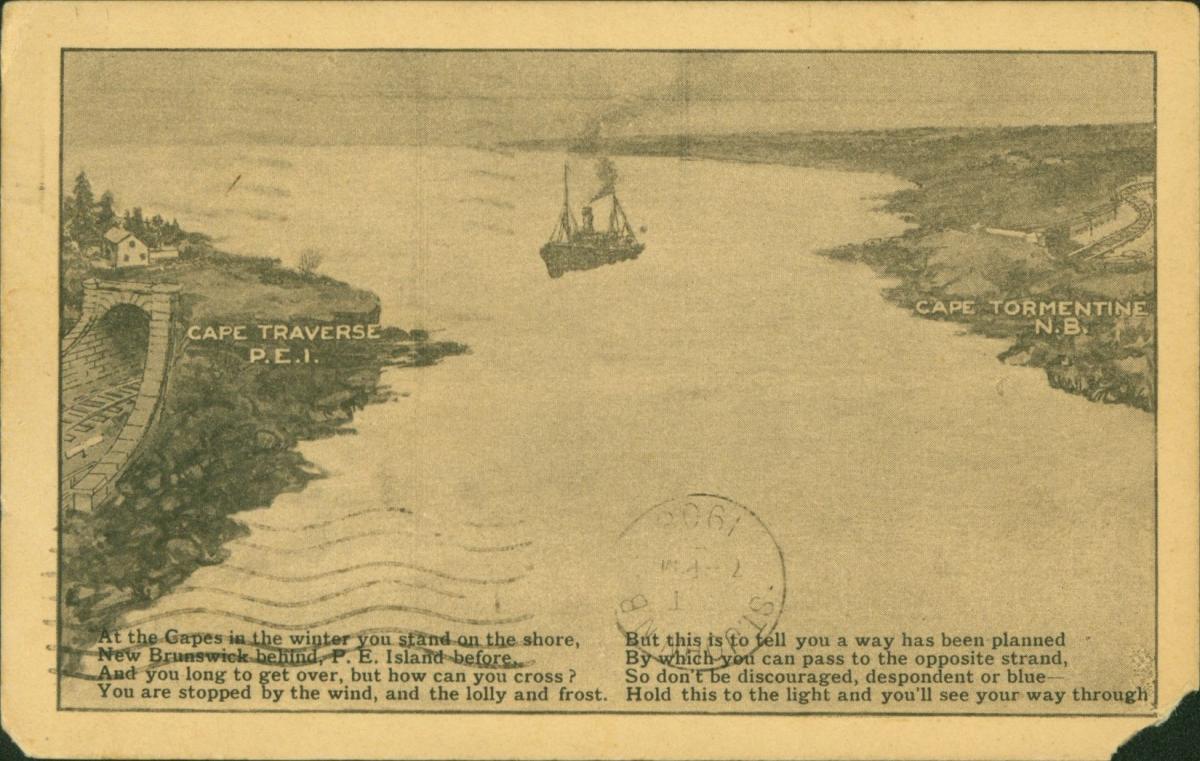 Today for the 8th day of 12 Days of PEI postcards we feature an Island pipedream that never was. The initial plans for an underwater railway tunnel can be traced back to a former senator, George Howlan, in the late 1800s with the construction of the Prince Edward Island Railway. This plan died out in the early 1900s, but as you can see from the sender of this postcard, they had plans to move to the Island when the tunnel was built.