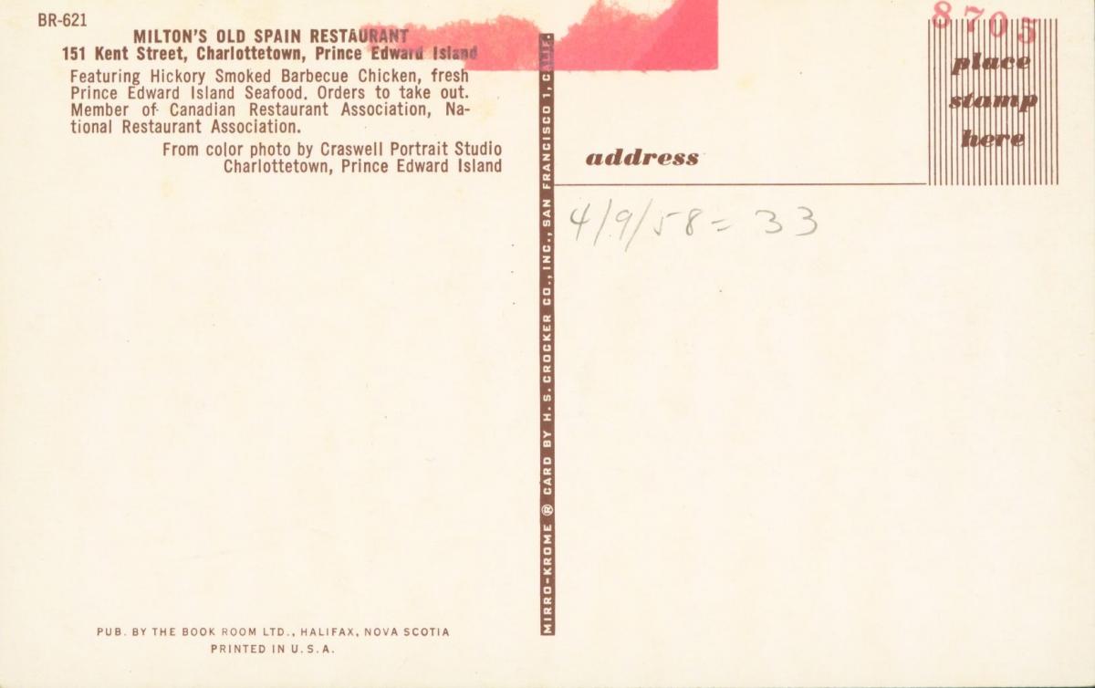 Today's postcard features an old restaurant that no longer exists. It used to be located in downtown Charlottetown on Kent Street. Any idea what popular restaurant is located in that building today?