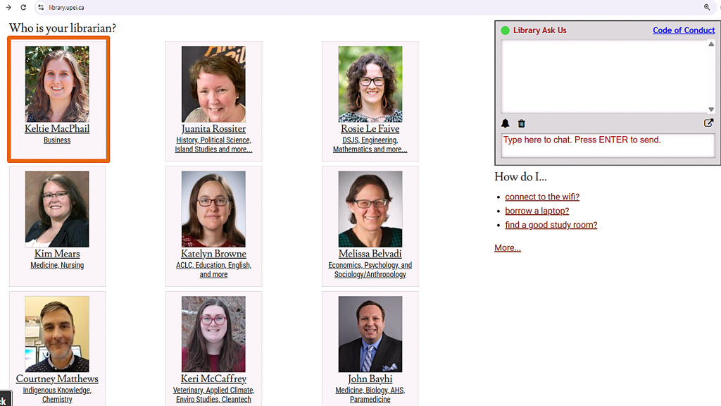 If you need more help, AskUs at the service desk, phone us at (902)-566-0583, send an email to reference@upei.ca, or use the chat tool on the library website.