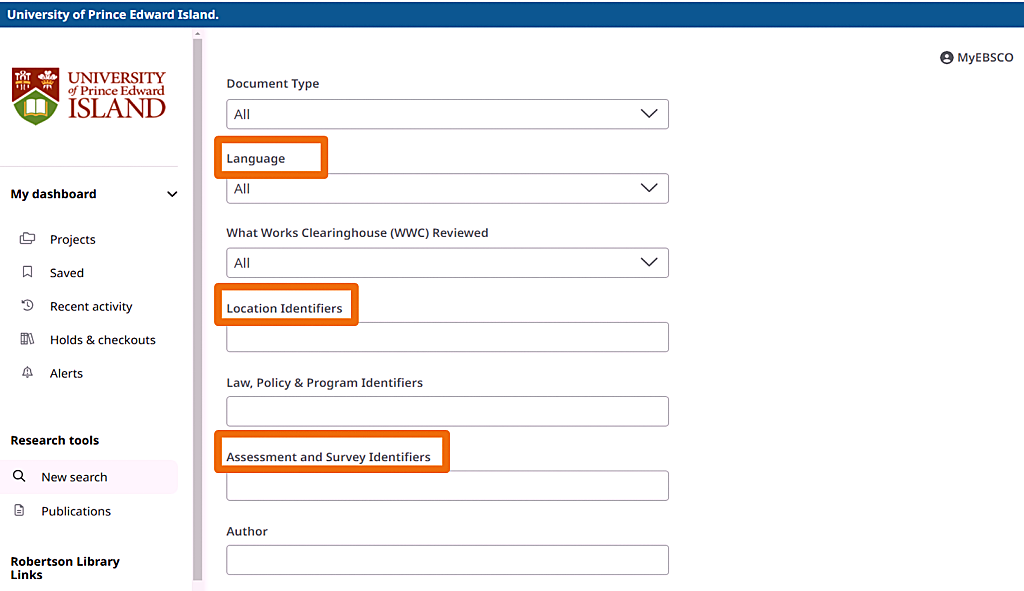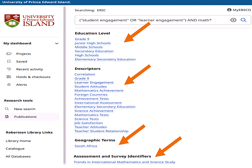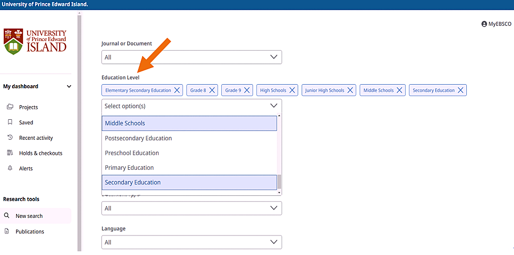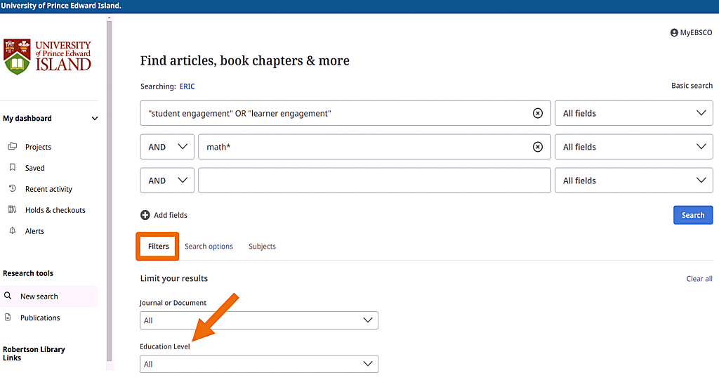 I can use ERIC’s built-in filters to focus on specific levels of education.