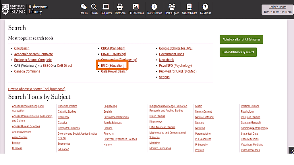 ERIC is a major research database in Education. This tutorial will show you a few ways to search effectively in ERIC. The Education librarian can also give you specific advice related to your own topic.