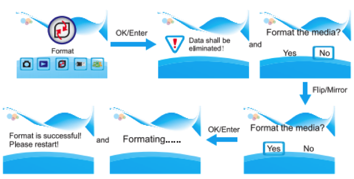 Format/Delete: To delete all previously saved data from internal memory, enter the Format submenu.
