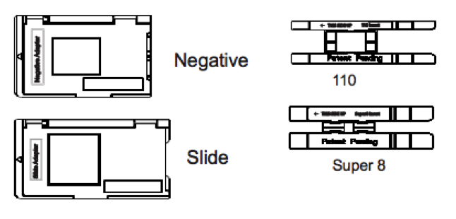 Once you’ve set the scanner to the correct film type, be sure to use the proper adapter for the job. Included are 2 adapter plates and 2 adapter inserts, each precisely cut to accommodate a particular type of film: