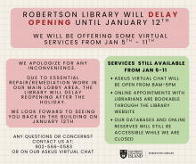 We apologize for any inconvenience, and look forward to seeing you back in the library on January 12th.