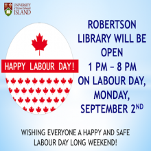 Robertson Library will be open 1 pm – 8 pm on Labour Day, Monday, September 2nd. Have a happy and safe Labour Day weekend! News