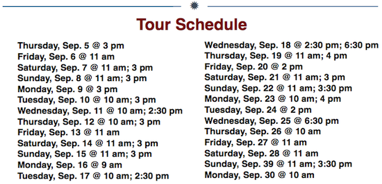 Tours start Thursday, September 5 and are available throughout the month.