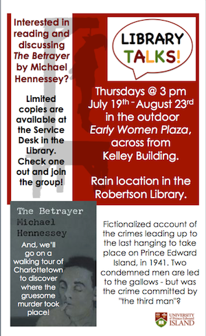 Join us at our Library Talks to chat about PEI author Michael Hennessey’s book The Betrayer, a fictionalized account of the crimes leading up to the last hanging to take place on Prince Edward Island, in 1941. Two condemned men are led to the gallows - but was the crime committed by "the third man"?