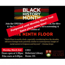 In recognition of Black History Month, Robertson Library, the UPEI Student Diversity Office (SDO), BIPOC USHR, and the Hive are presenting a screening and discussion of The Ninth Floor, an NFB documentary written and directed by Mina Shum.