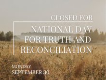 Please be aware that Robertson Library will be closed this upcoming Monday, September 30th, in observance of the National Day for Truth and Reconciliation.