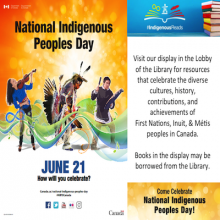 Visit our display in the Lobby of the Library for resources that celebrate the diverse cultures, history, contributions, and achievements of First Nations, Inuit, & Métis peoples in Canada.