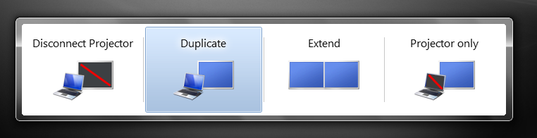 - While holding the Fn key press the cycle display button to bring up a menu with some options like: Duplicate and Extend.