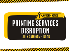 Due to a system upgrade, our patron Printing Services will be disrupted on July 25th, from 9 a.m. to noon. During this time, printing via PaperCut will be unavailable, and users may see errors indicating no available funds.