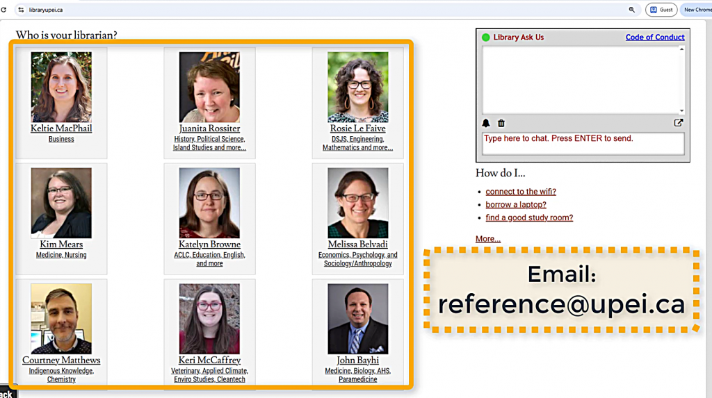 If you have questions or need support with a specific situation, you can reach out to your subject librarian or e-mail reference@upei.ca
