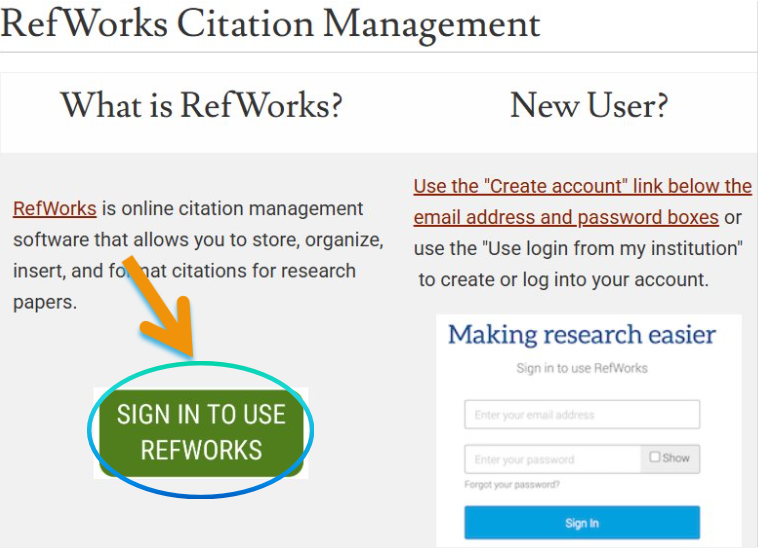 Click on Sign in to use RefWorks
