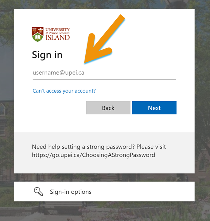 When you click on “University of Prince Edward Island,” you will be taken to the UPEI login screen.