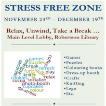 Back by popular demand, the Robertson Library is hosting the Stress Free Zone!